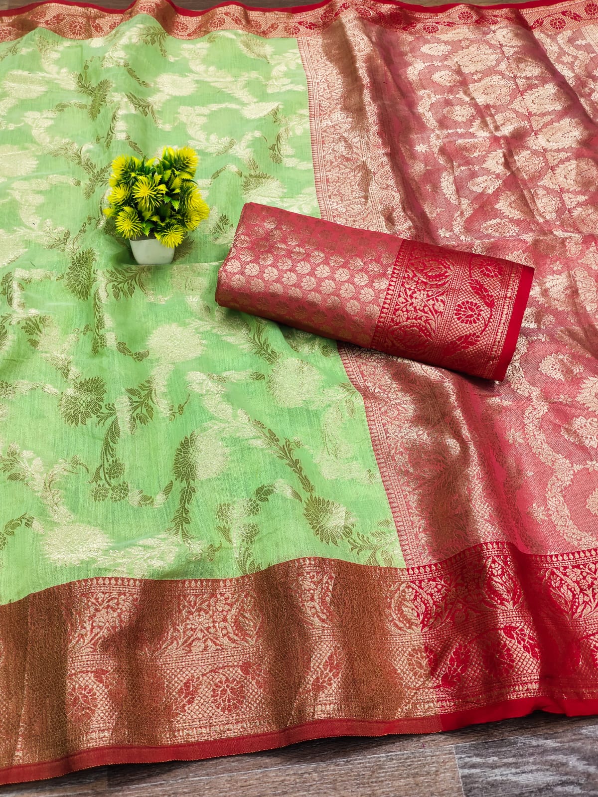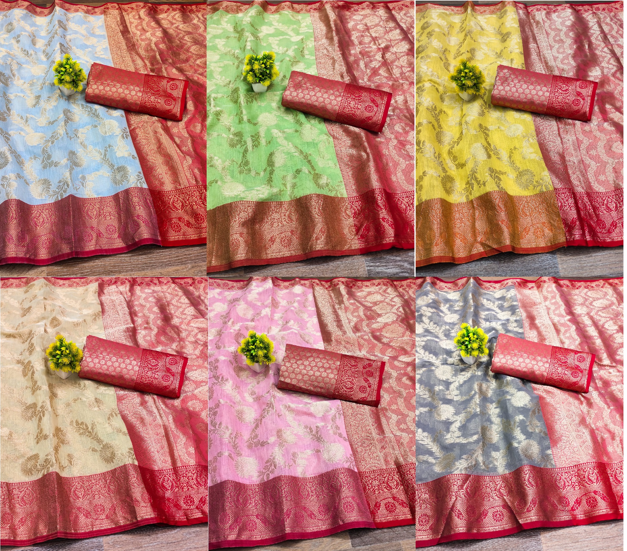 | Fabric Description | Linen Silk Red Border Anmol Jari Jaal with Rich Pallu |