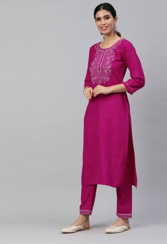 Crafted with meticulous attention to detail, this round-neck kurti set features a stunning pink hue that exudes femininity and elegance. The soft and comfortable fabric ensures a perfect fit that gently drapes over your curves, enhancing your natural beauty.