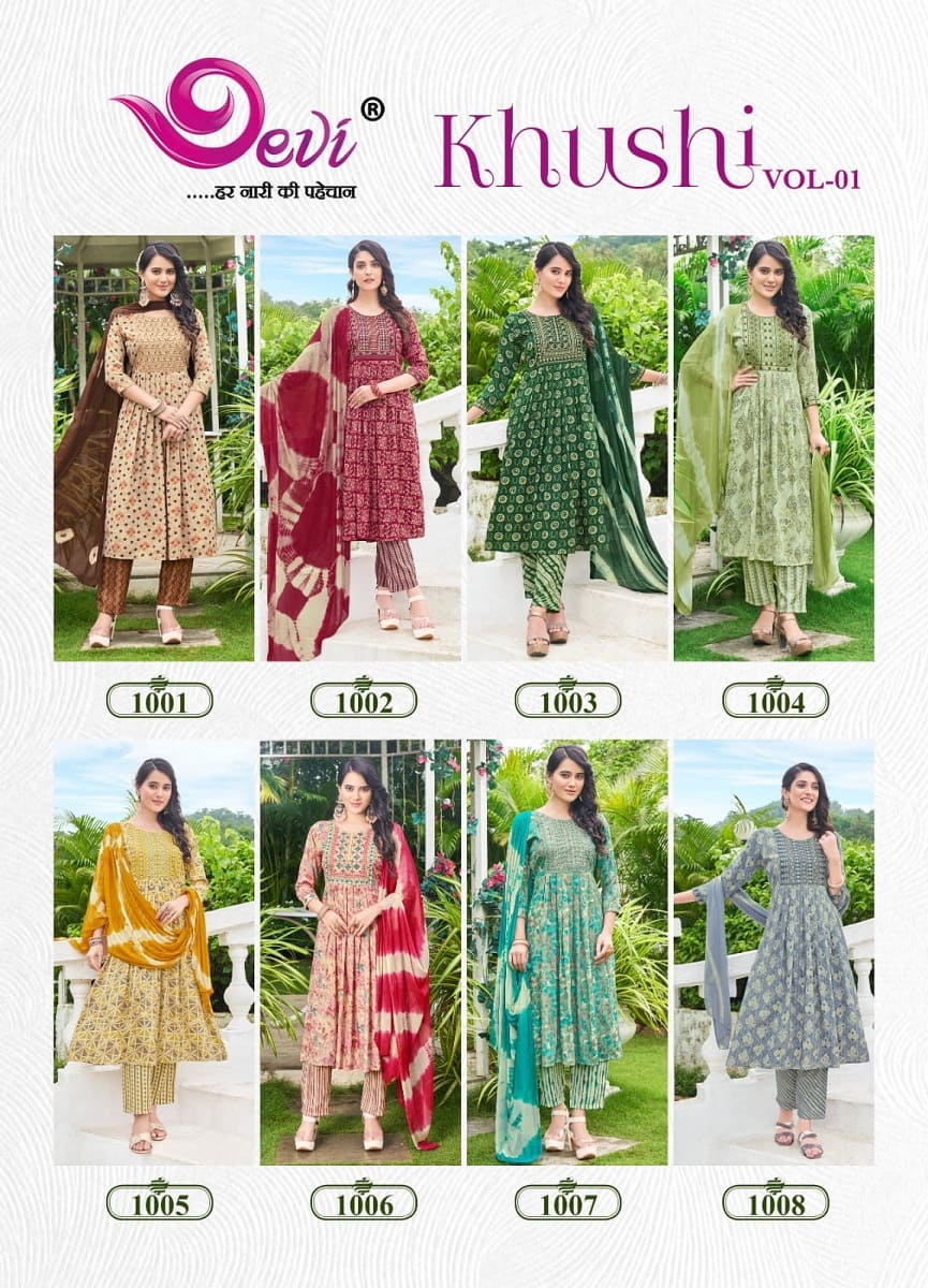 | Catalog Name | Devi Khushi 1 Rayon Designer Nyra Cut Kurti Collection |