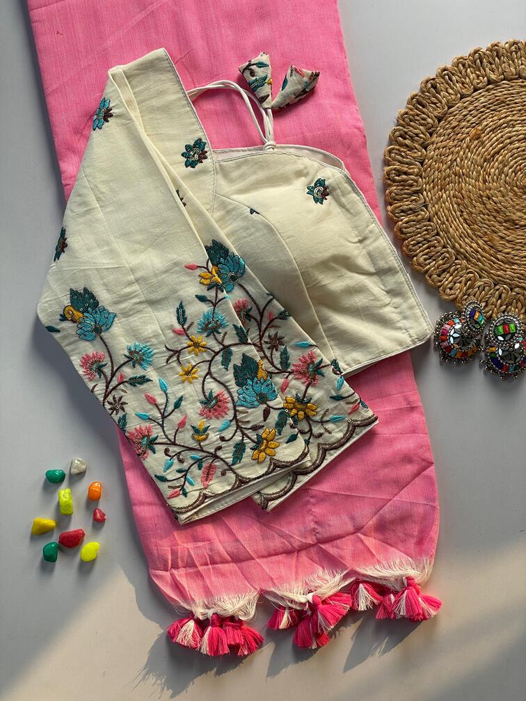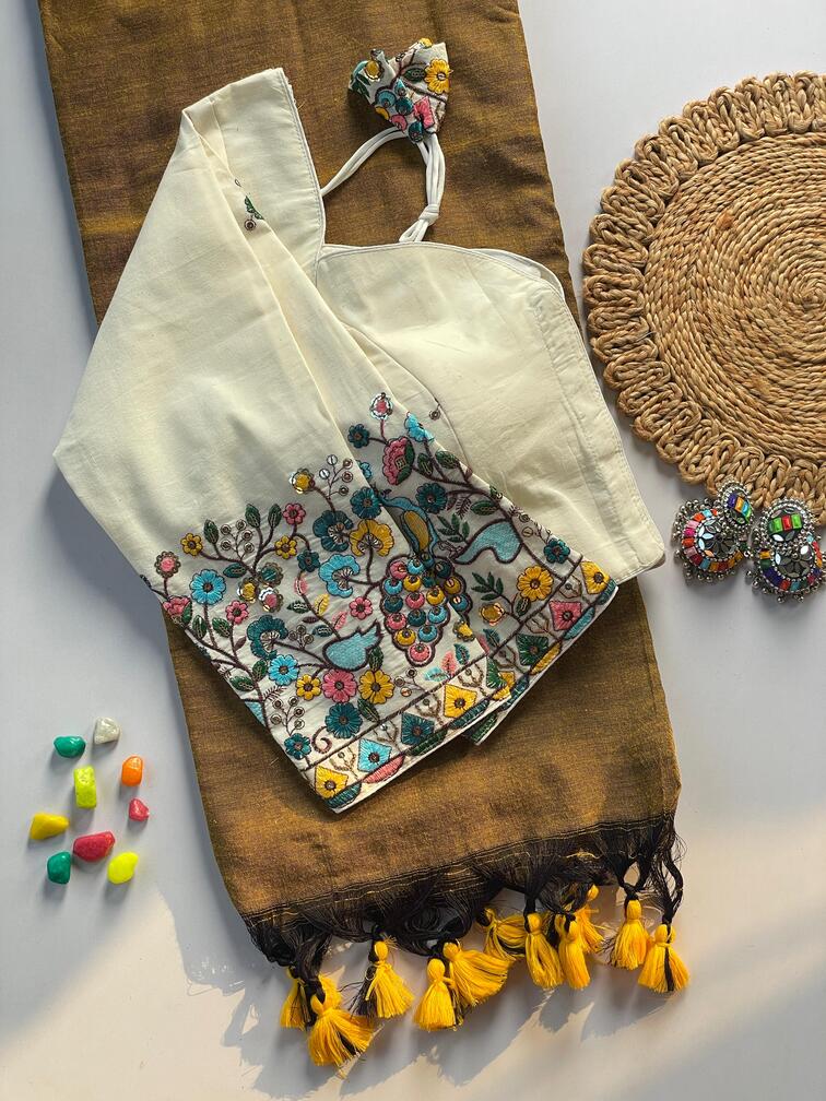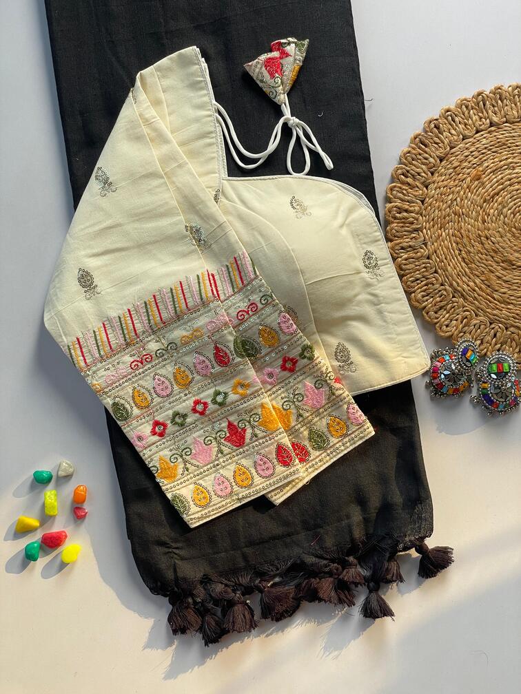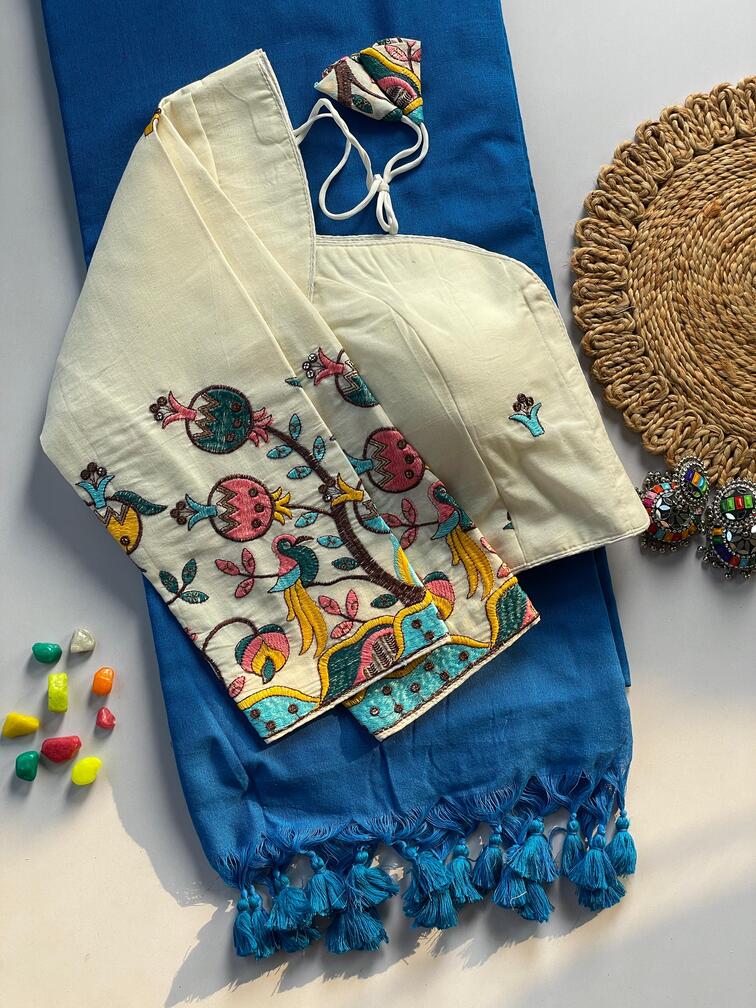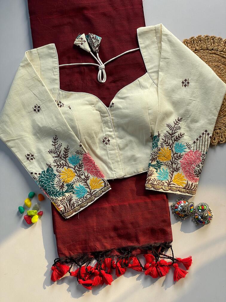 | Fabric Description | Cotton, Khadi || Saree :- Khadi Cotton Saree | Blouse :- Pure Khadi Blouse With Embroidery Work (Size :- 38 Alterable Up To 42) | Sleeves :- 19 Inch |
