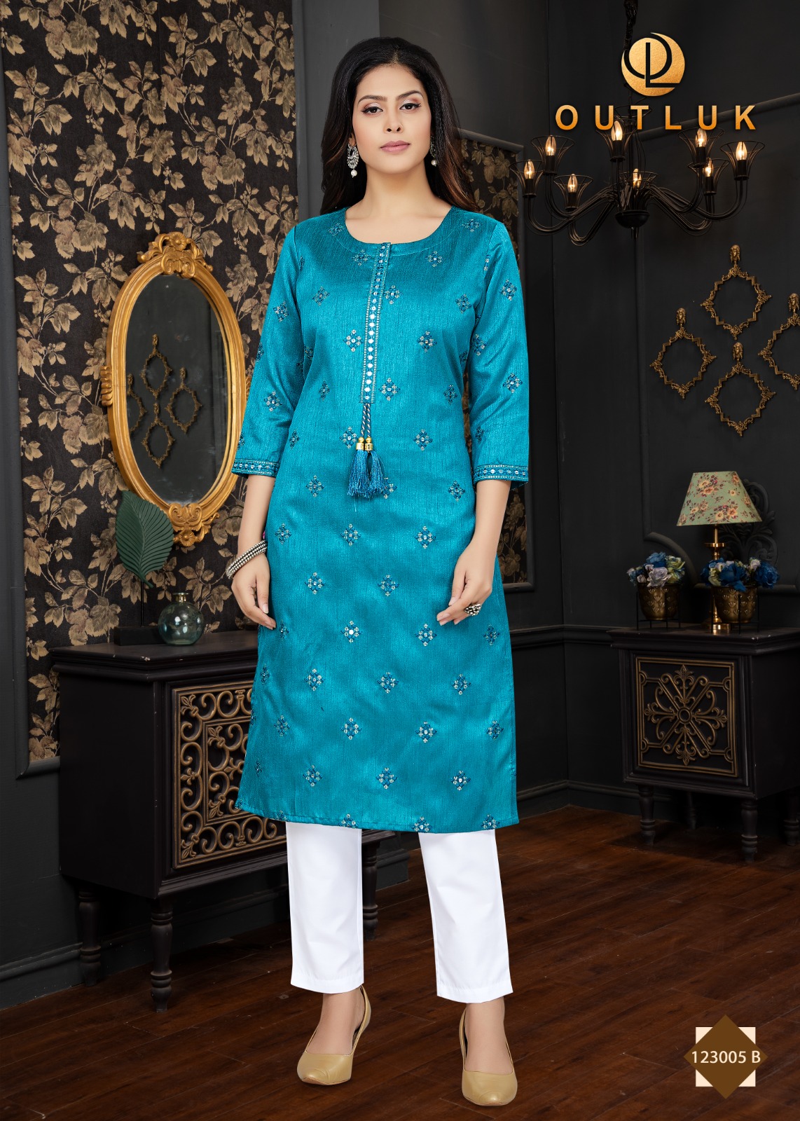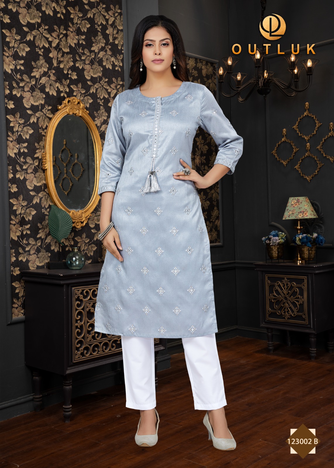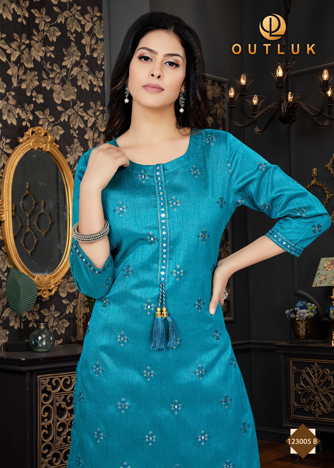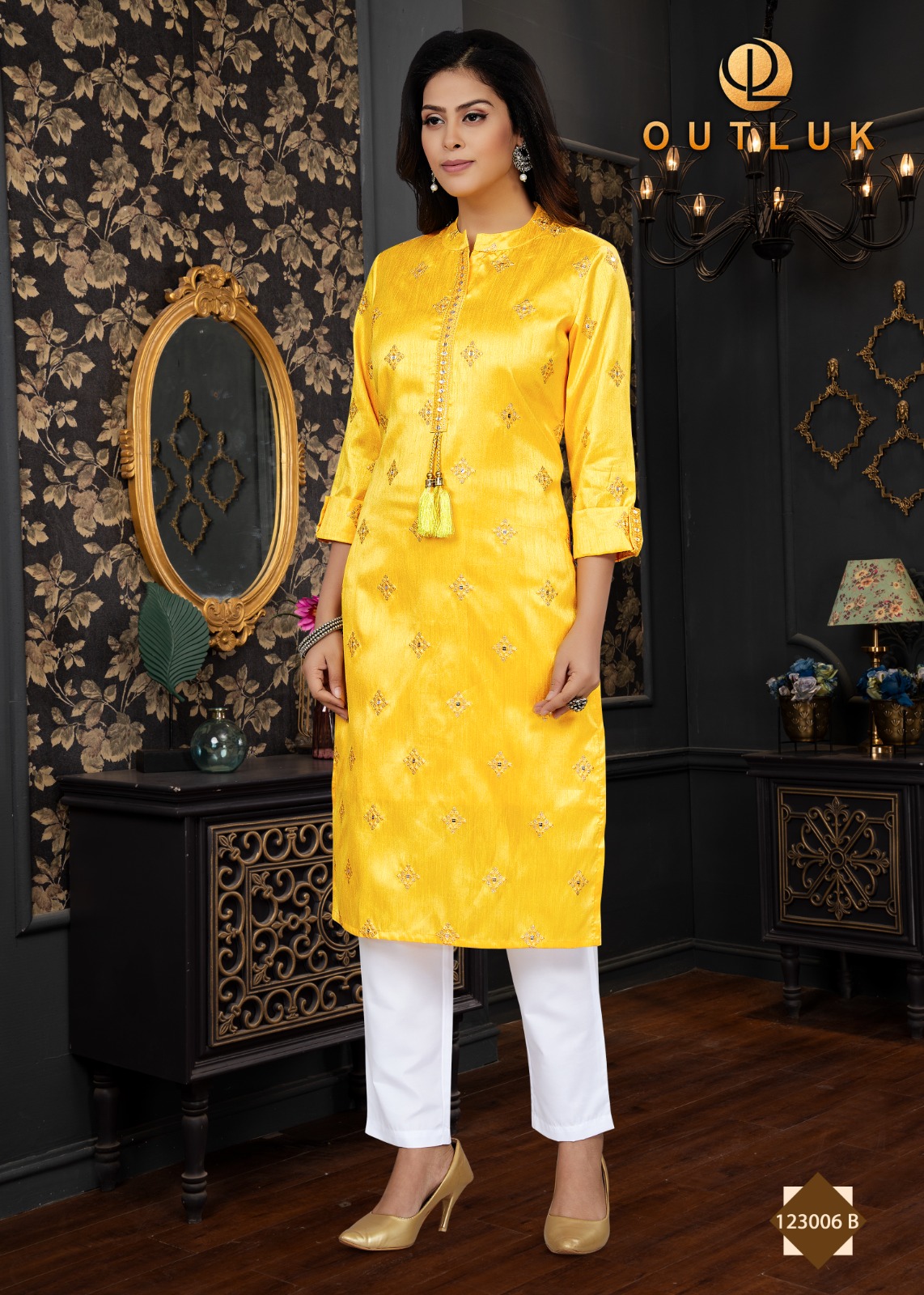 | Catalog Name | Outluk Vol 123 B Women Embroidery Silk Kurti With Pant Collection |