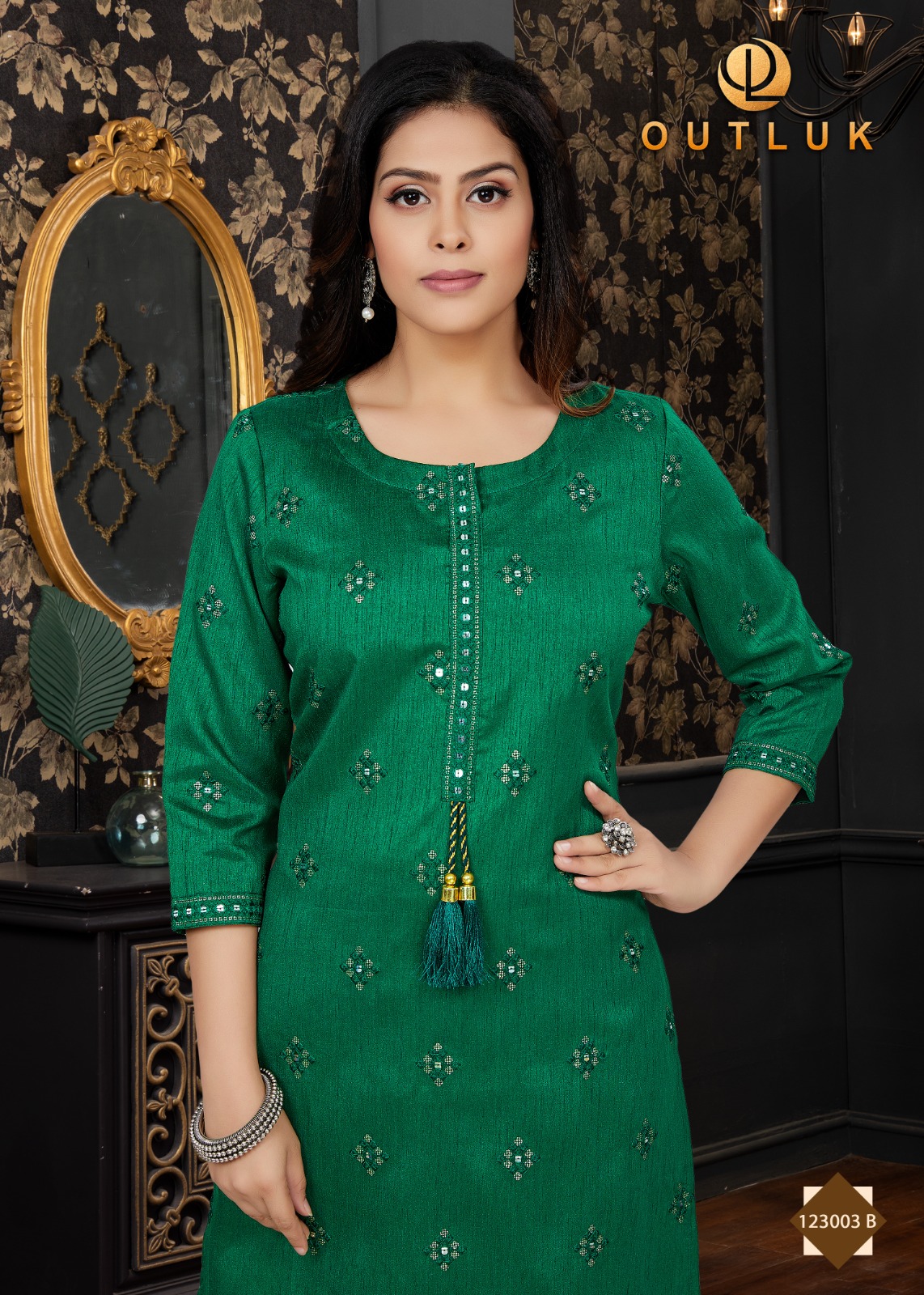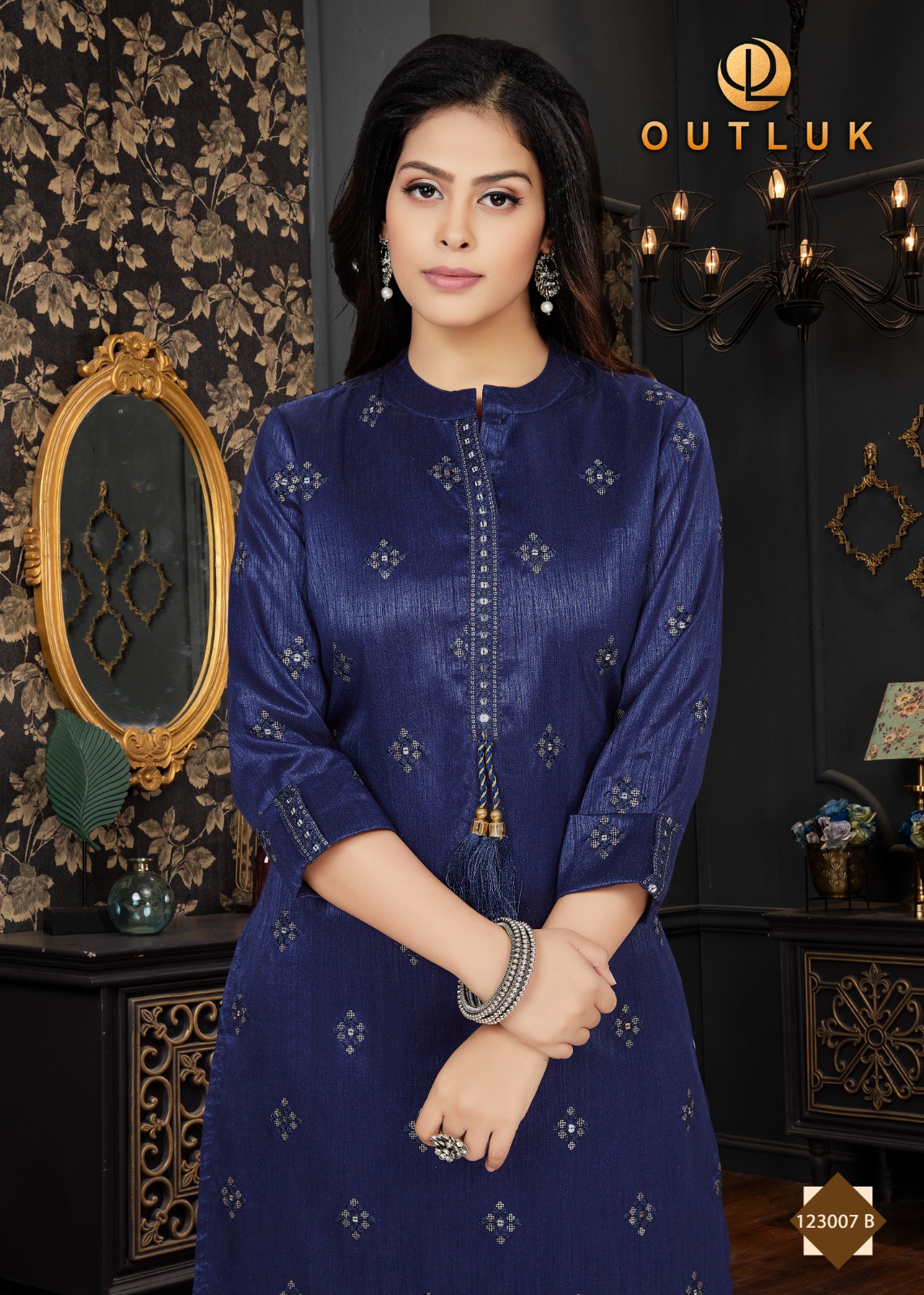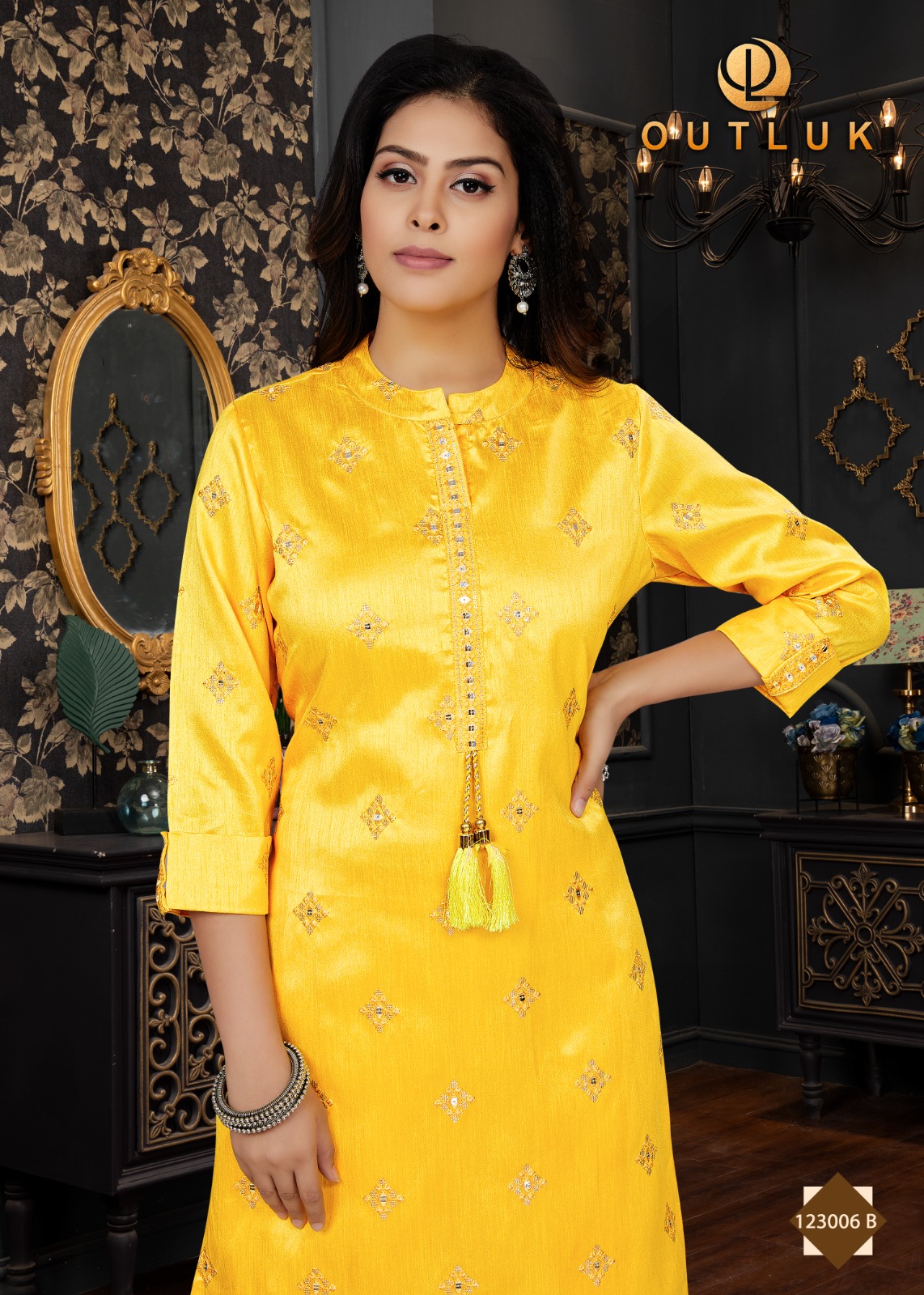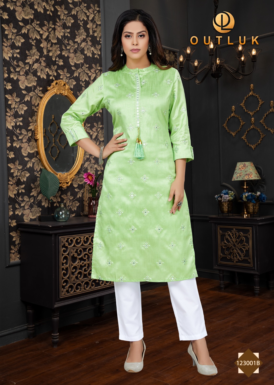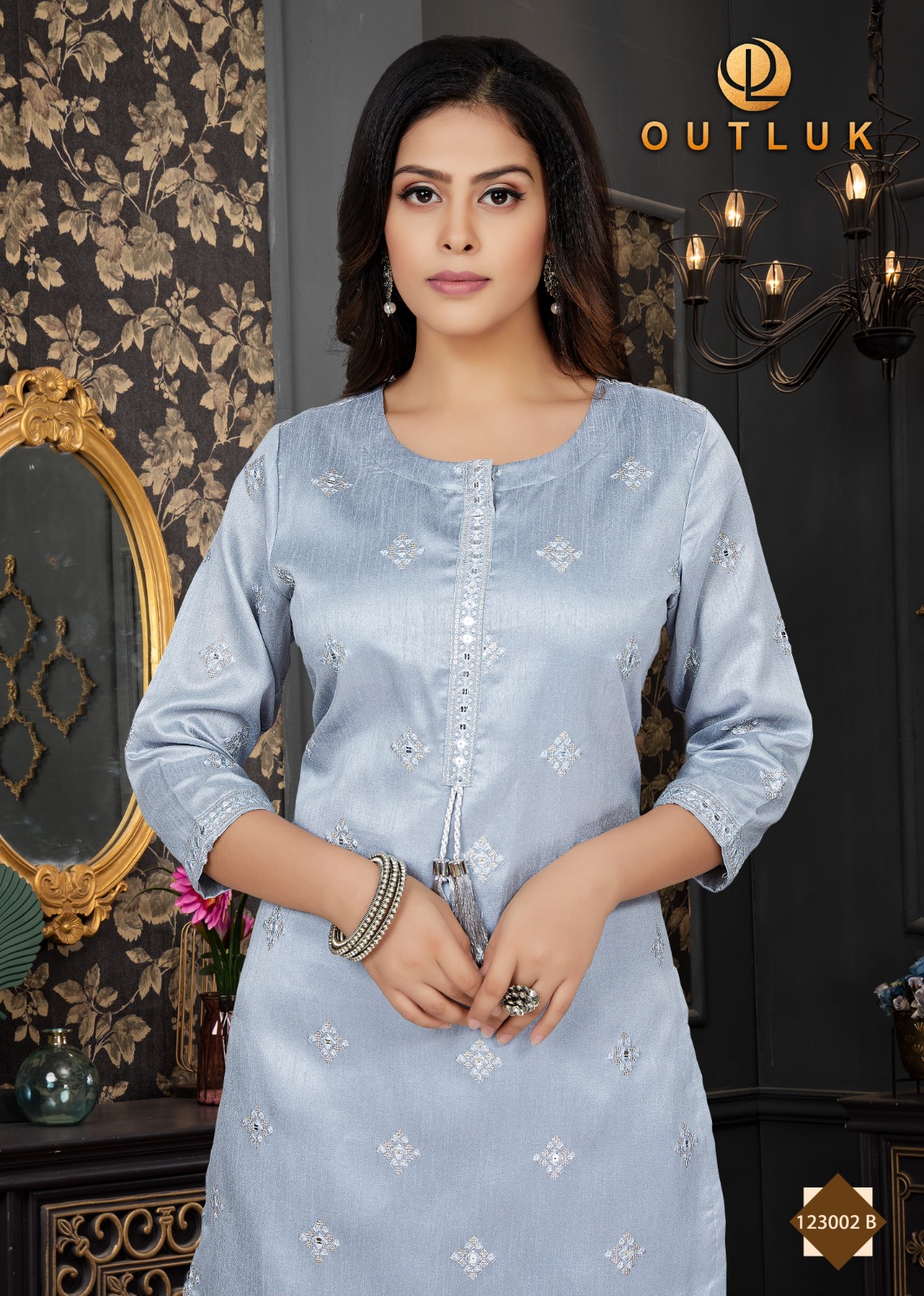 | Catalog Name | Outluk Vol 123 B Women Embroidery Silk Kurti With Pant Collection |