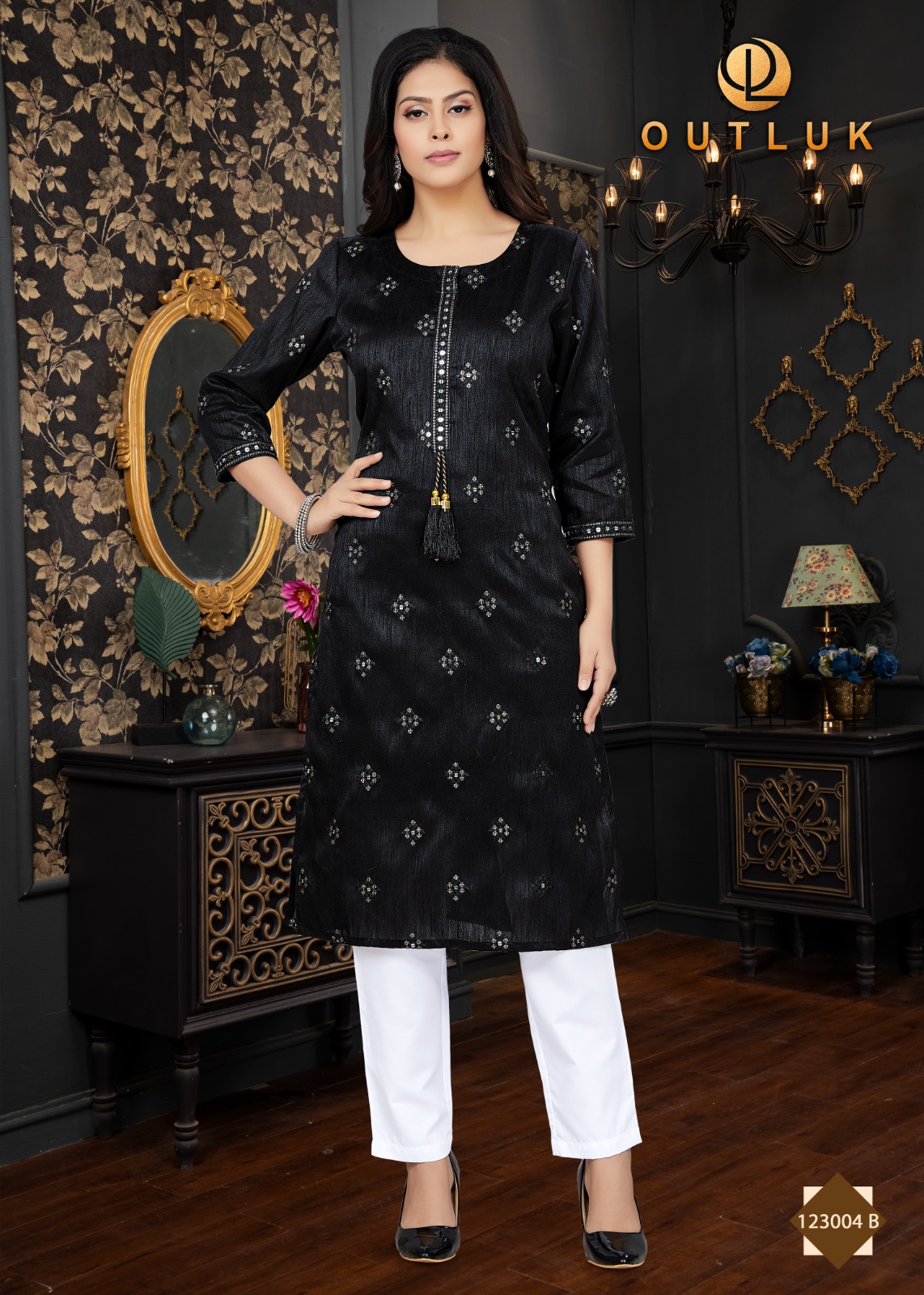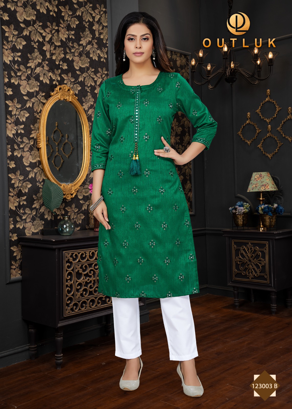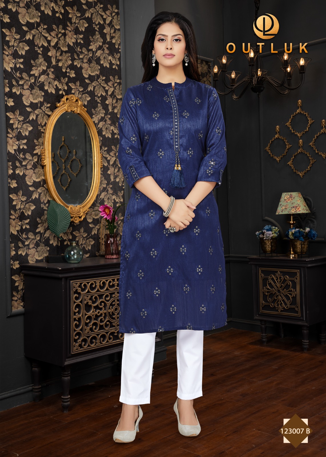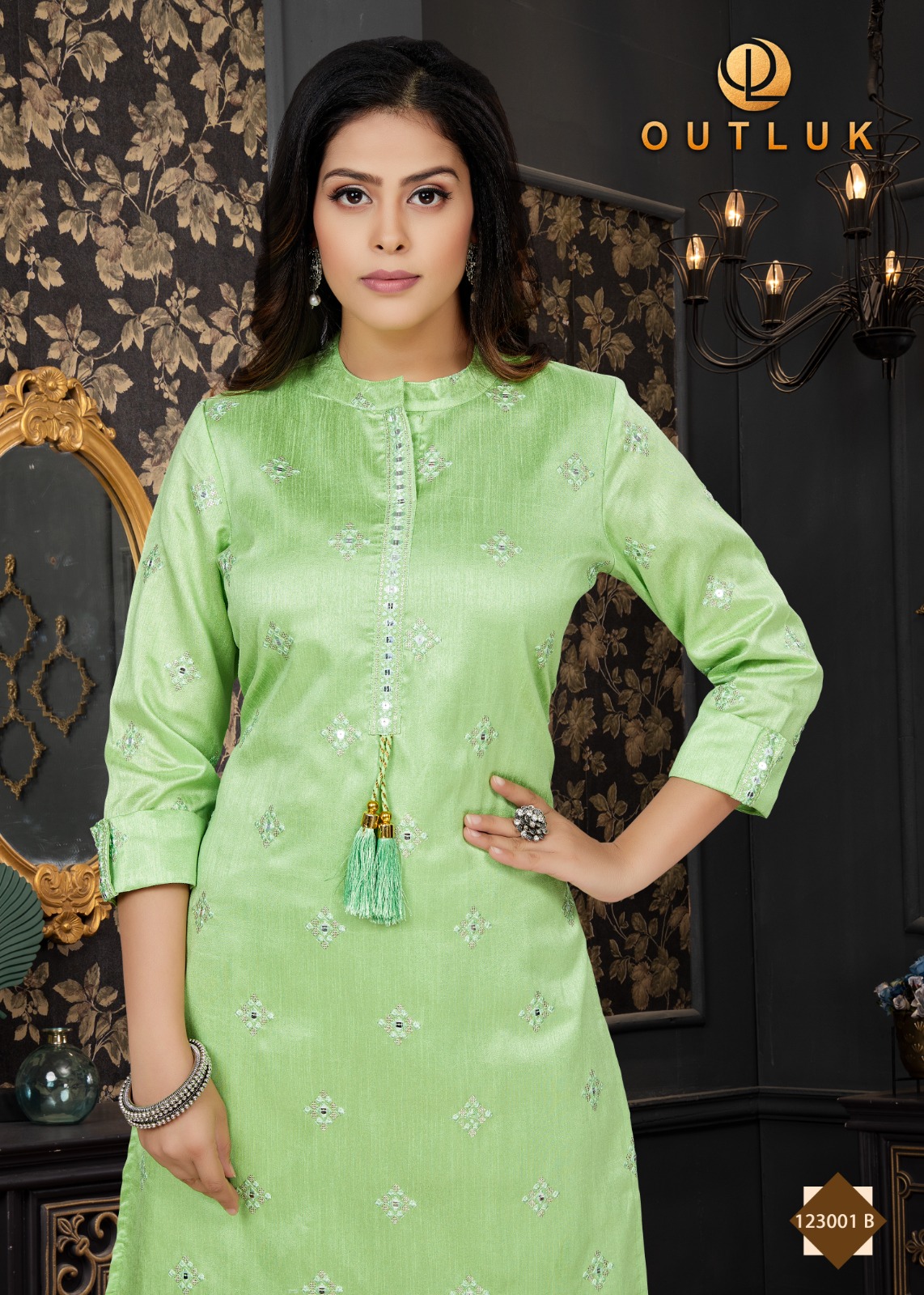| Catalog Name | Outluk Vol 123 B Women Embroidery Silk Kurti With Pant Collection |
