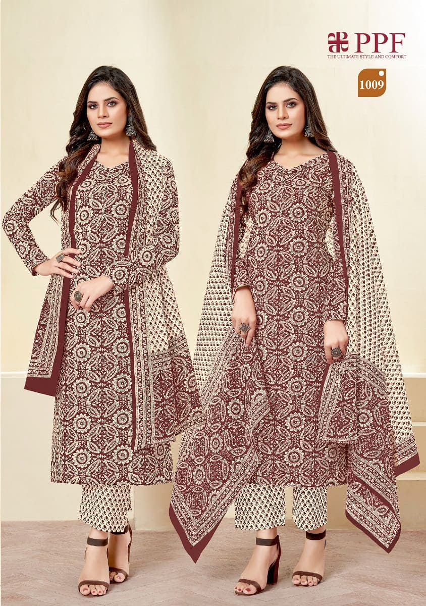 Our Ppf Prisha Vol 1 collection features a wide range of stylish and trendy dress materials that are guaranteed to make heads turn. Each piece is carefully crafted with intricate prints and patterns that will effortlessly elevate your fashion game.
