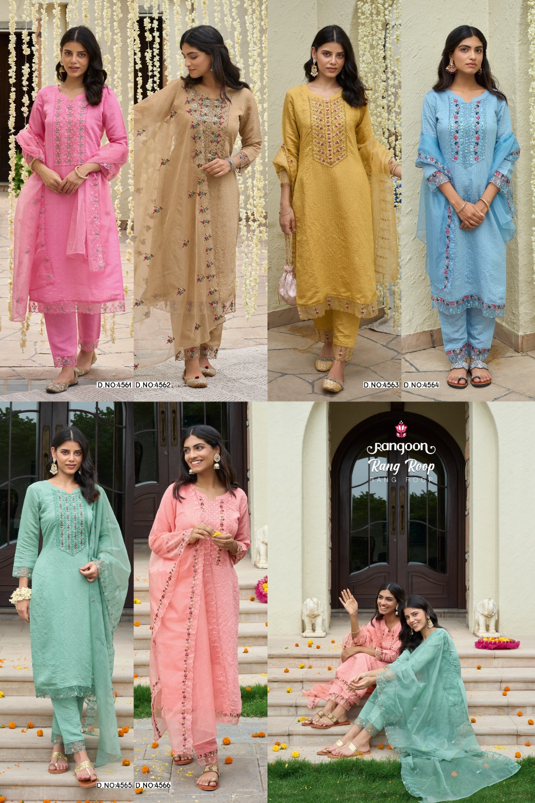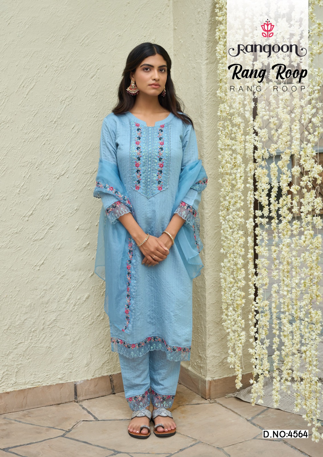 | Catalog Name | Rangoon Rang Roop Embroidery Kurti Pant With Dupatta Collection |