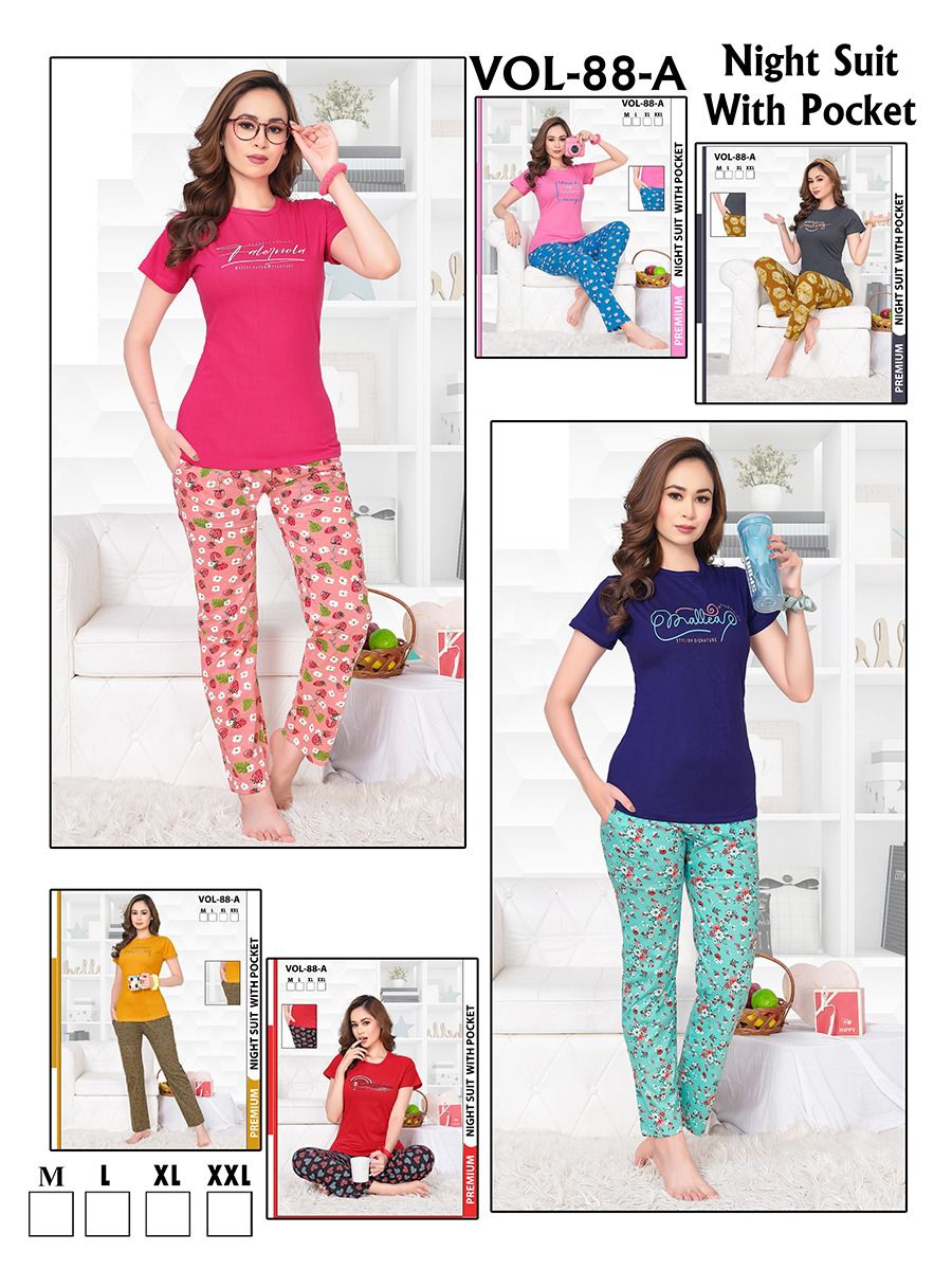 Summer Special 88 Hosiery Cotton Printed Night Wear Suite