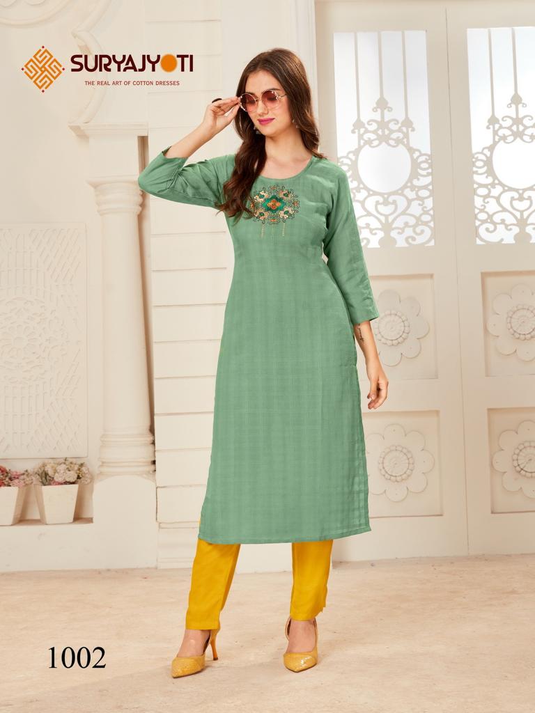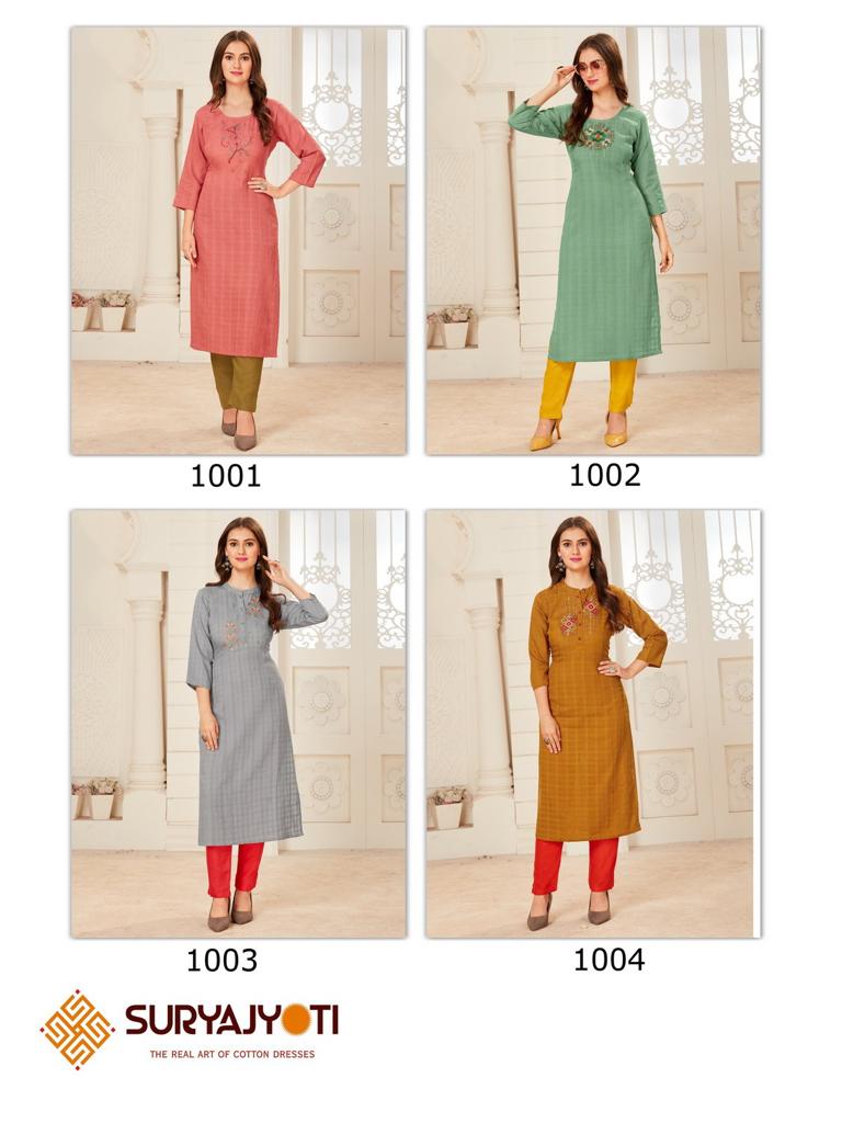 | Catalog Name | Suryajyoti Nirja Quicker Vol 1 Embroidery Kurti Collection |