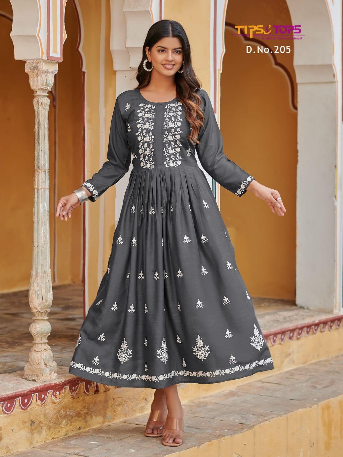 Elevate your ethnic wardrobe with the Tips and Tops Lakhnavi Vol 2 Designer Long Kurti a blend of traditional grace and contemporary style. This wholesale collection offers a stunning array of designer long kurtis, each intricately crafted to showcase the beauty of Lakhnavi embroidery. The designs resonate with the rich cultural heritage of India, making these kurtis ideal for various occasions. Whether it's a casual gathering, festive celebration, or formal event, the collection provides versatile options for every fashion-conscious woman. Immerse yourself in the allure of traditional attire with a modern twist, curated to perfection in this wholesale ensemble.