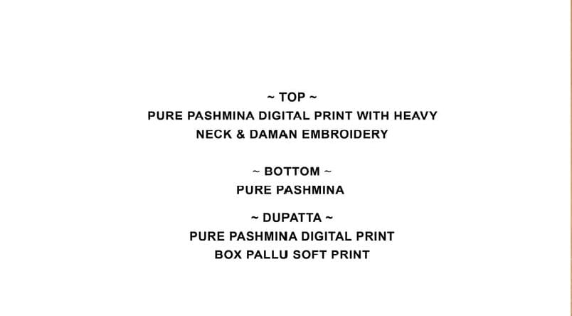 | Fabric Description | Pashmina || Fabric Details Attached |