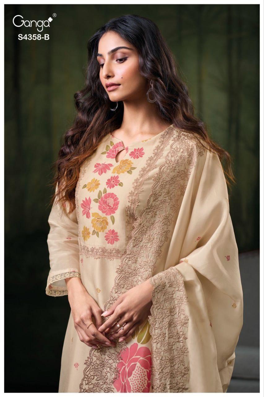 Ganga Deempi 4358 designer salwar suit crafted in rich silk fabric. Elegant export quality ethnic wear collection for boutiques and resellers, available at best wholesale price.