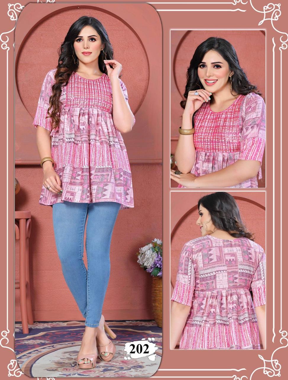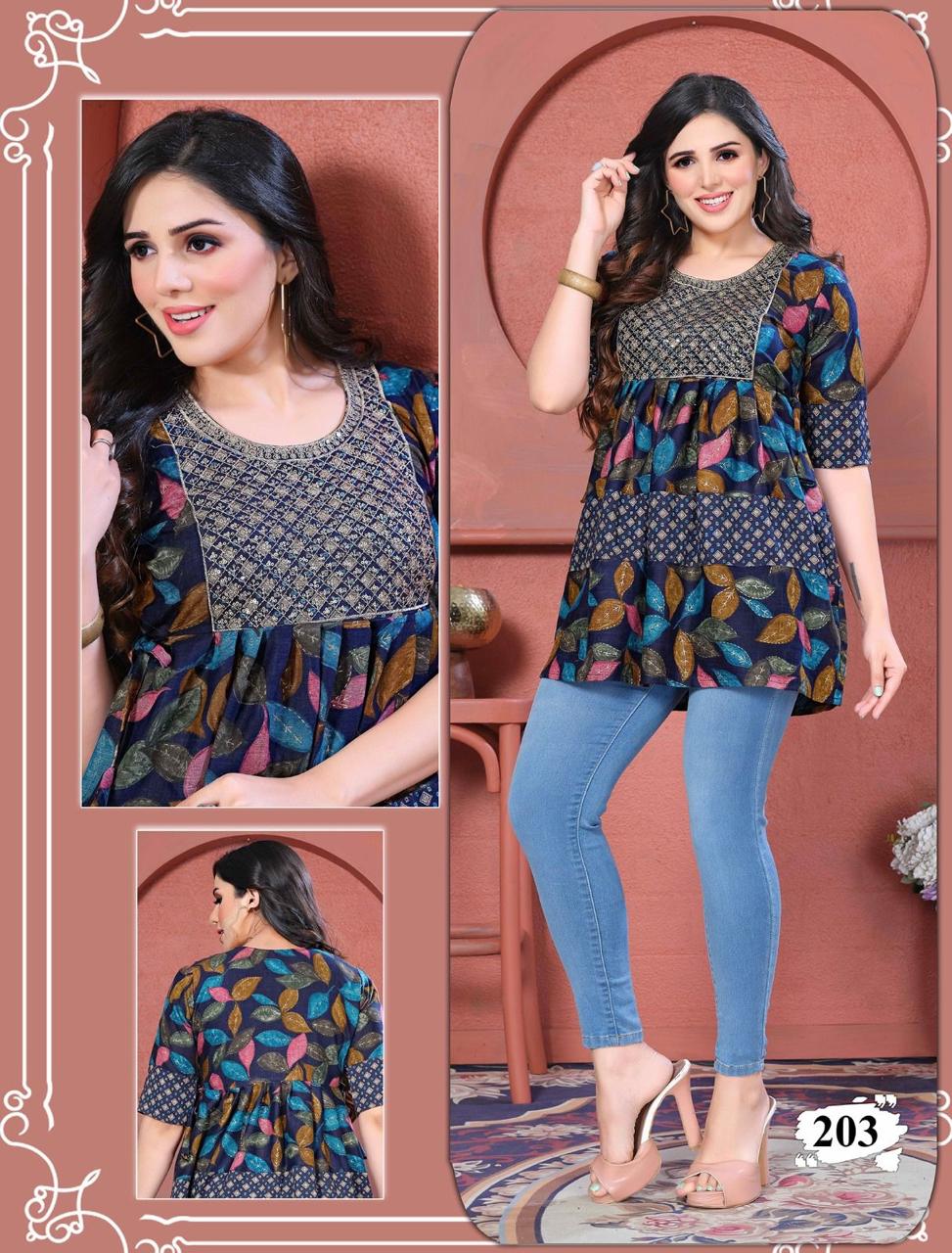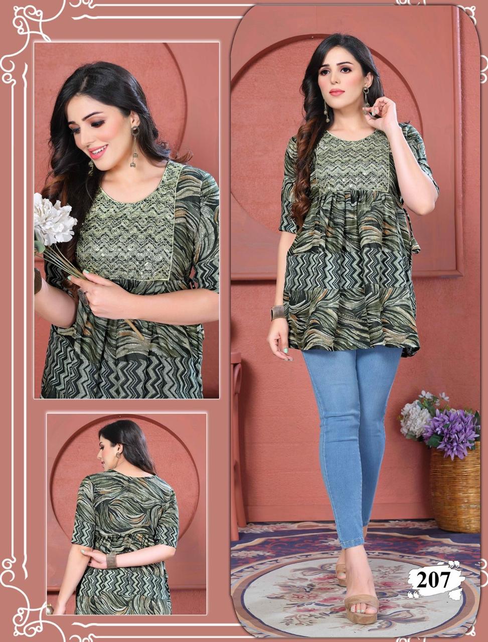 | Catalog Name | Golden Little Charms Rayon Stylish Short Top Collection |