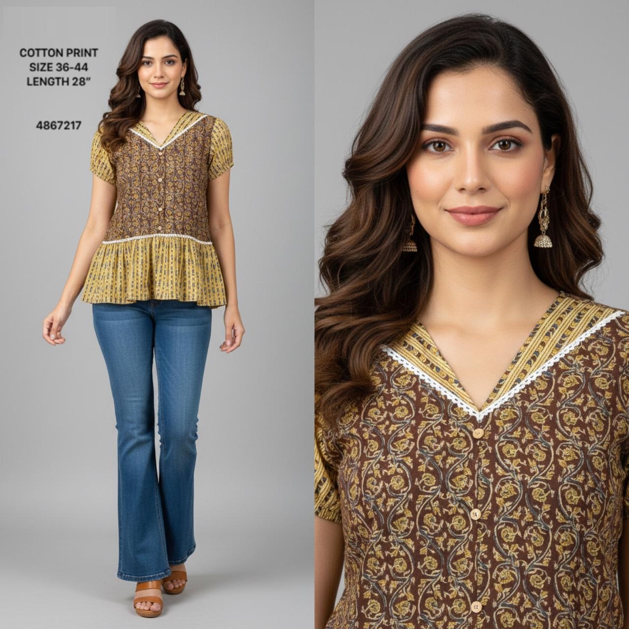 This collection features a wide range of stylish prints, including floral patterns, geometric designs, and modern motifs. Each top is designed to reflect current fashion trends while maintaining a timeless appeal.