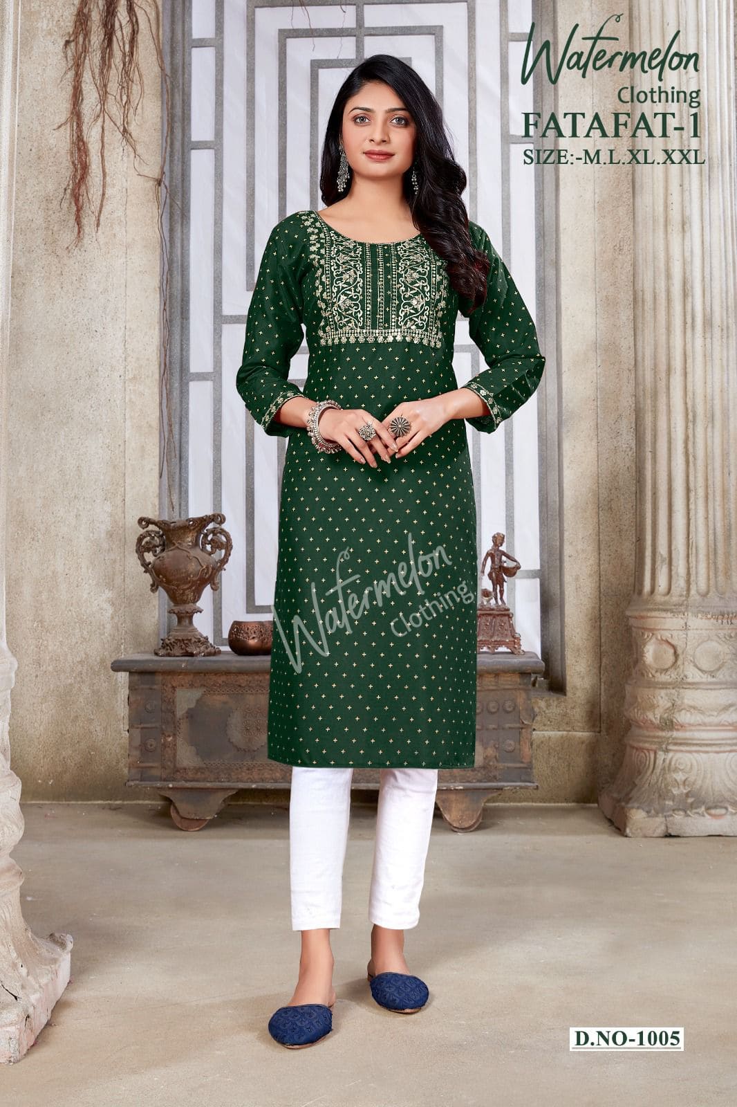 | Catalog Name | Watermelon Fatafat1 Embroidery Print Cotton Kurti Collection |